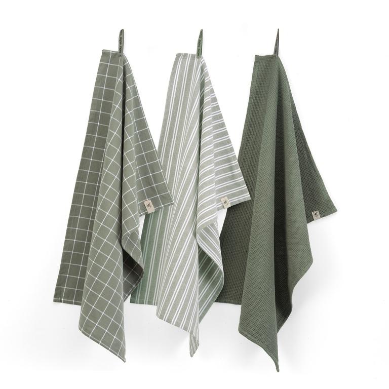 Walra Keukenset Dry Cubes Uni, Stripes & Blocks 3-delig - Legergroen